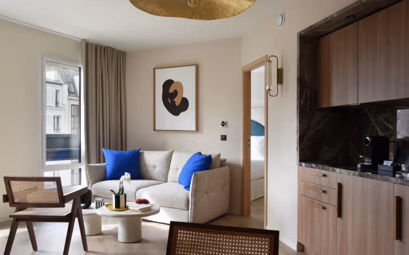 Réservez votre studio 2 personnes à Yuna Porte-Maillot : un espace optimisé pour les voyageurs d’affaires, avec literie haut de gamme, coin repas, cuisine équipée et TV HD pour vos moments de détente après une journée bien remplie. Le confort d’un chez-soi, à deux pas de vos rendez-vous professionnels.