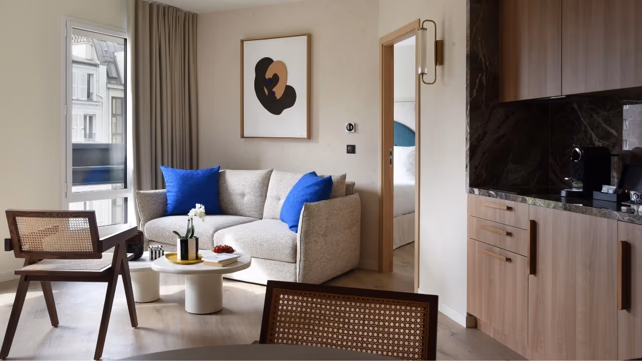 Vivez l'élégance parisienne au cœur du 17e, à quelques pas de l'Arc de Triomphe et des Champs-Élysées. Idéalement situé entre les quartiers d'affaires de Levallois et Neuilly, vous profiterez d’un cadre dynamique et raffiné, mêlant commerces, restaurants et culture. Que ce soit pour un séjour d’affaires ou une escapade chic, cet emplacement vous offre une immersion unique dans l'âme parisienne.