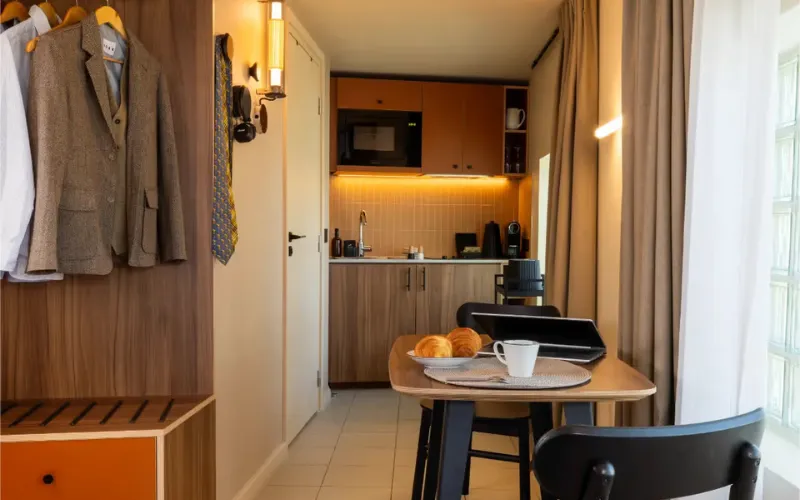 Découvrez notre studio classique, la typologie la plus abordable pour un séjour 4 étoiles. Idéal pour deux personnes, ce cocon de 20m² allie fonctionnalité, luminosité naturelle et ambiance chaleureuse. Cuisine équipée, lit douillet, salle de bain cozy : tout le confort est réuni pour une escapade citadine à petit prix, sans compromis sur la qualité.
